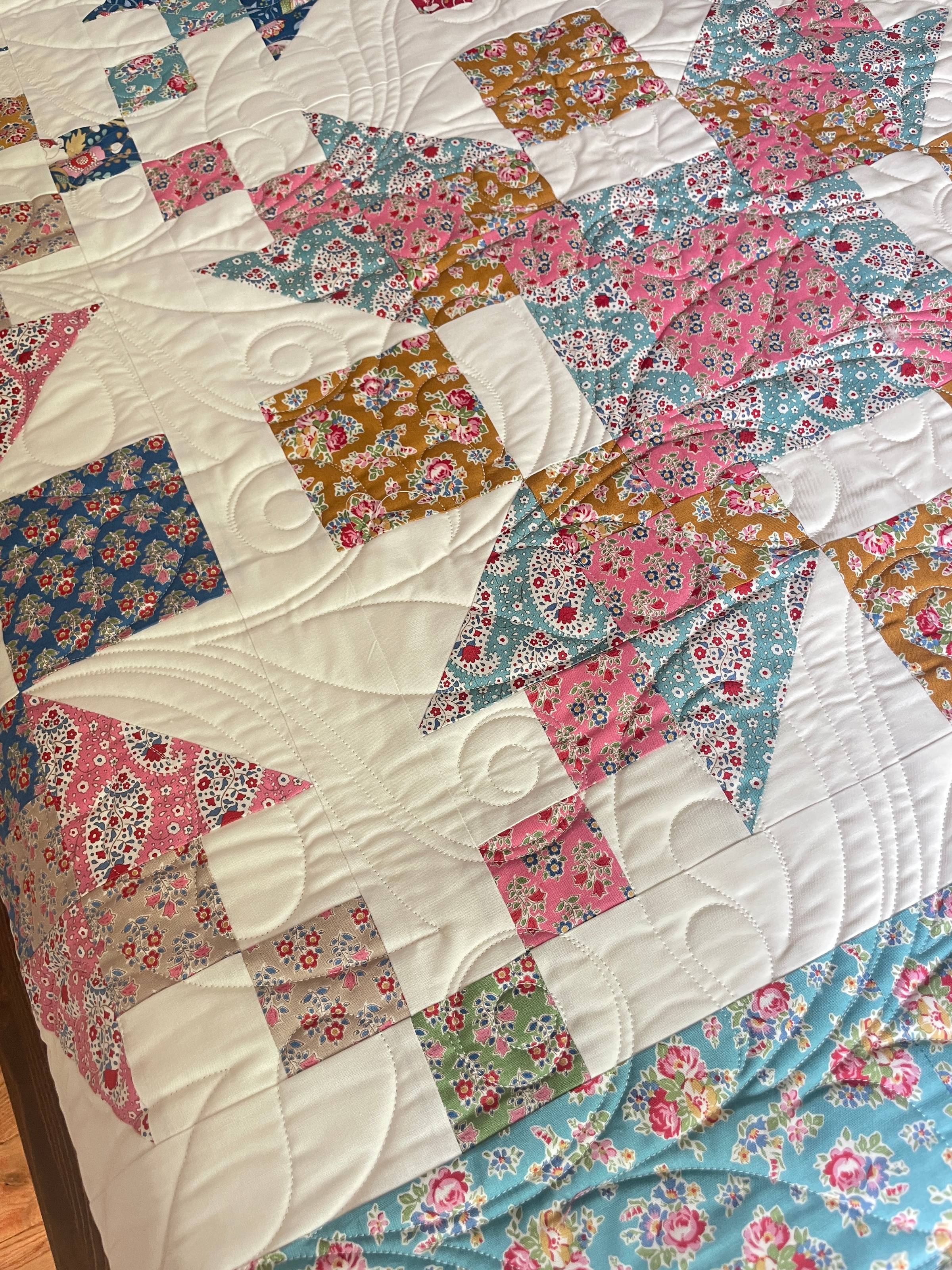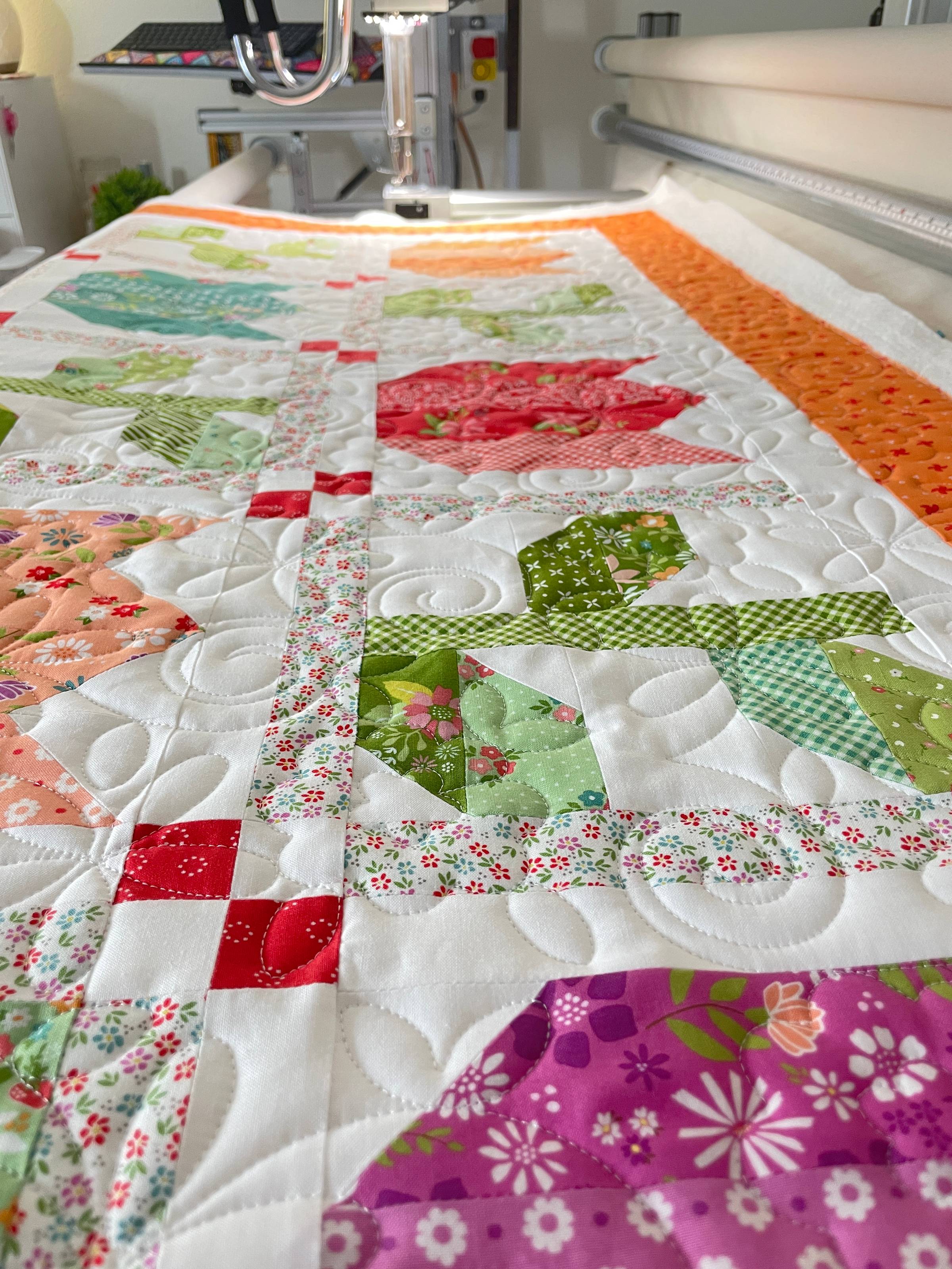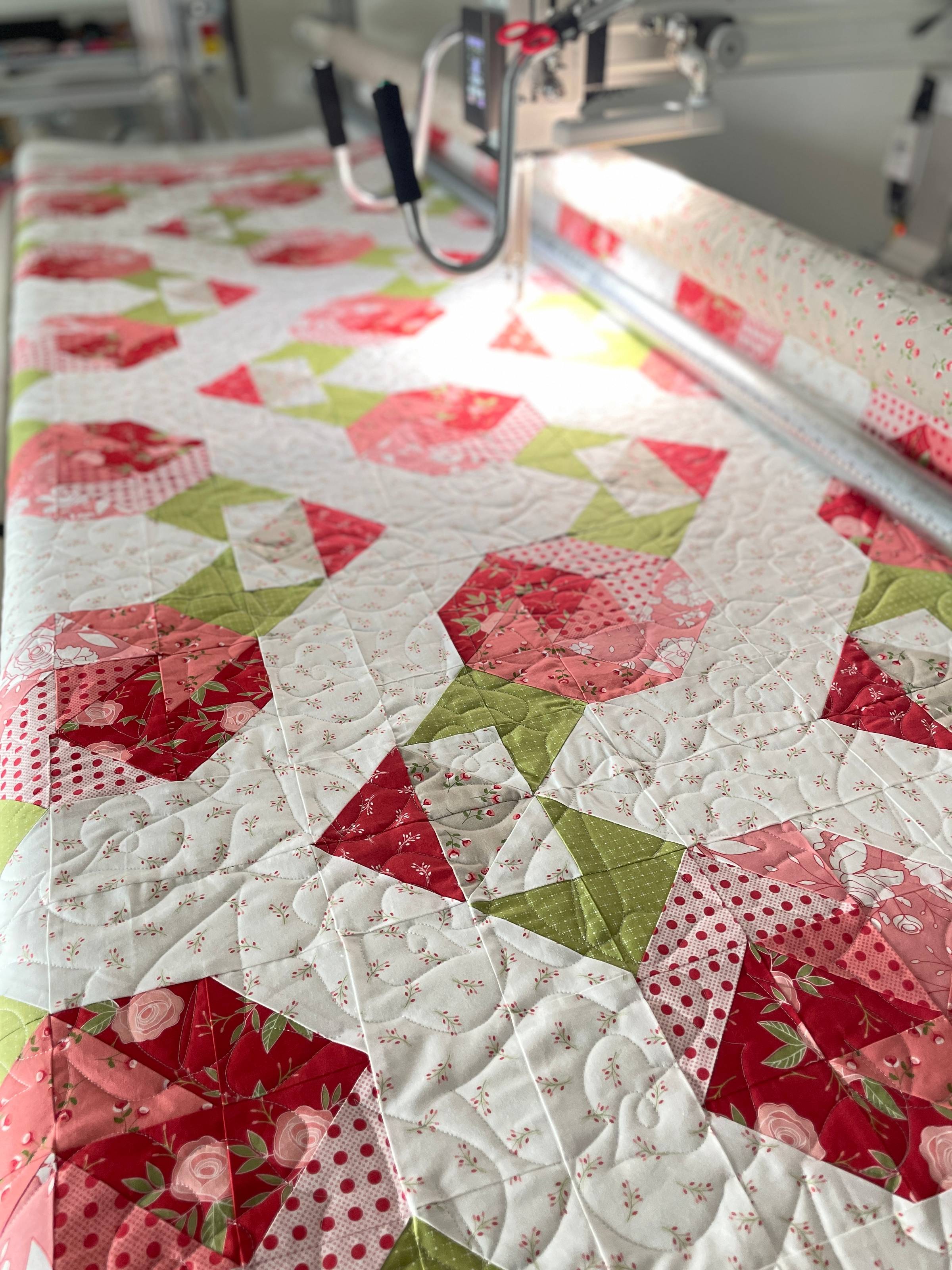 Did you know I offer computerized edge-to-edge longarm services? I'm located in Sandy, Oregon, and accept quilts by drop-off or mail-in. This September, enjoy computerized edge-to-edge longarm quilting at 25% off my regular rate of 3¢ per square inch, which includes 80/20 cotton/poly batting. Average turnaround time is 3-4 weeks from the day I receive your quilt. Please note; I quilt in the order in which quilts are received. I would be thrilled if you considered me for your longarm quilting...
